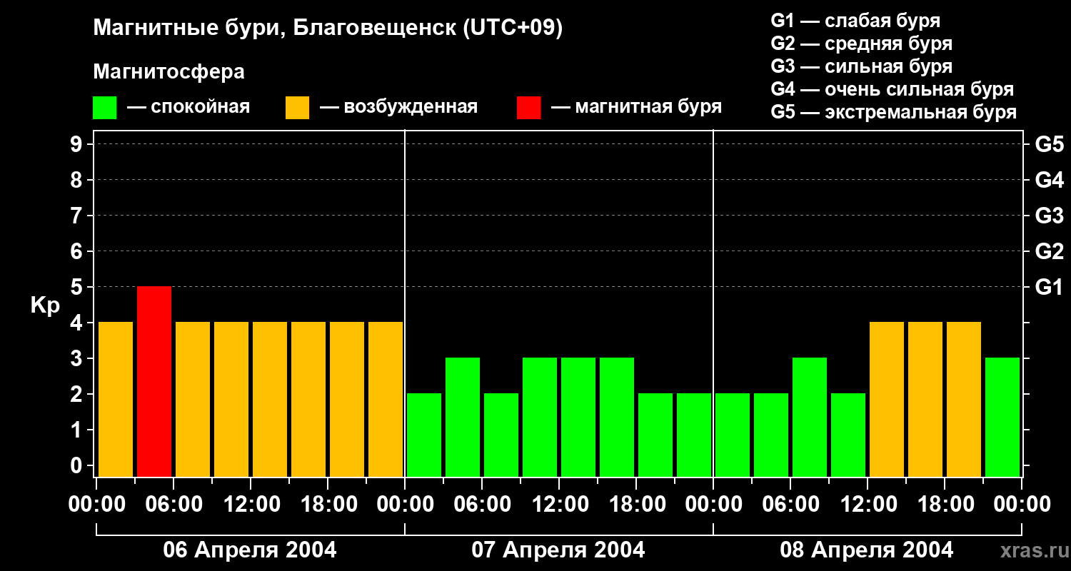 Магнитные бури в Благовещенске — 8 апреля 2004 года
