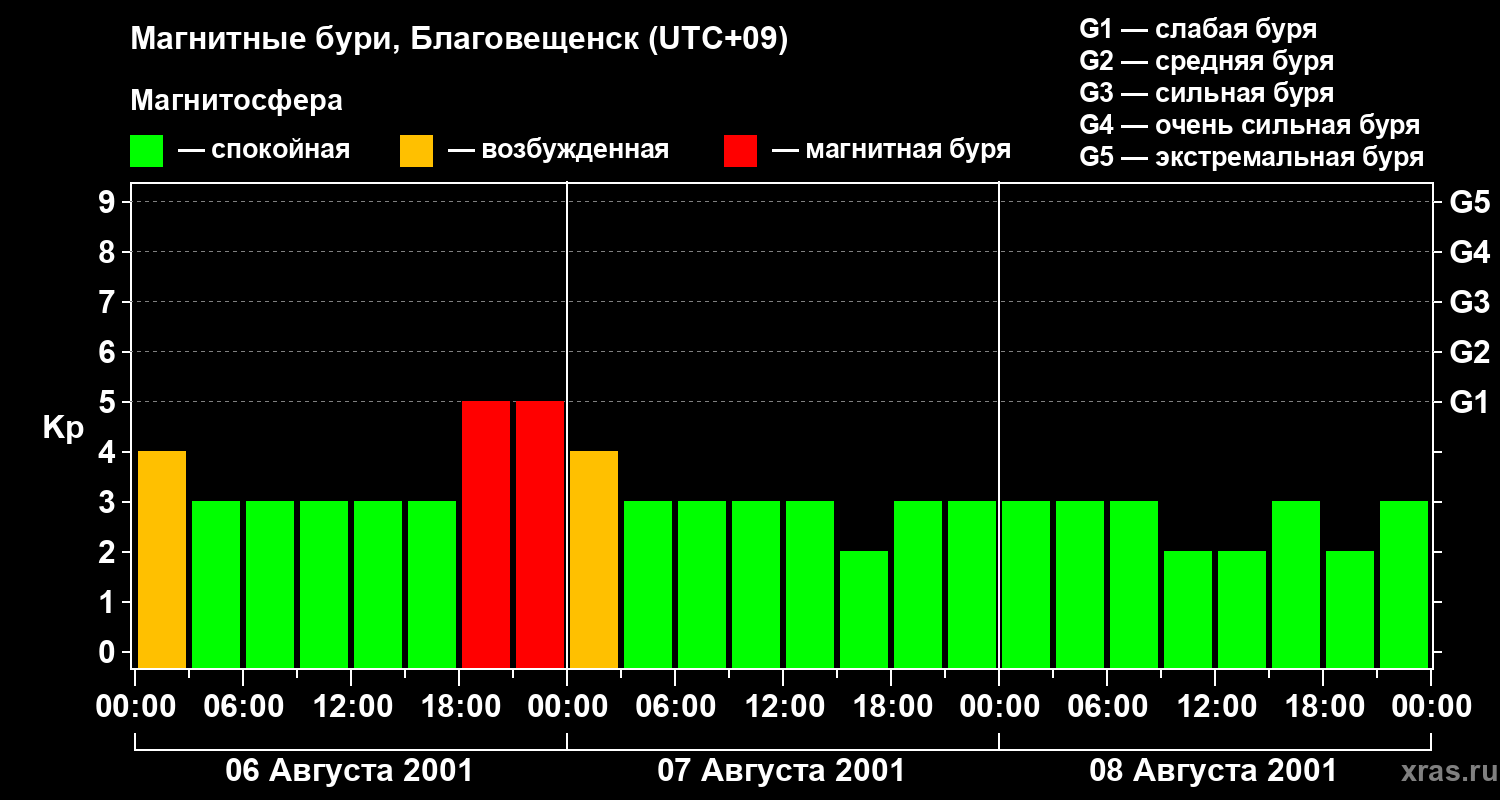 Магнитные бури в Благовещенске — 8 августа 2001 года