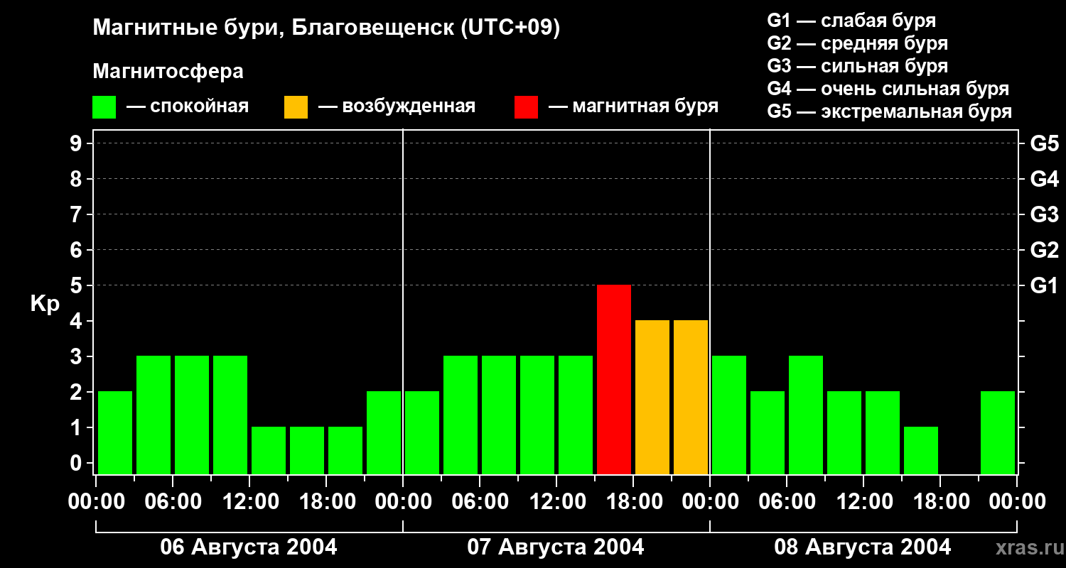 Магнитные бури в Благовещенске — 8 августа 2004 года