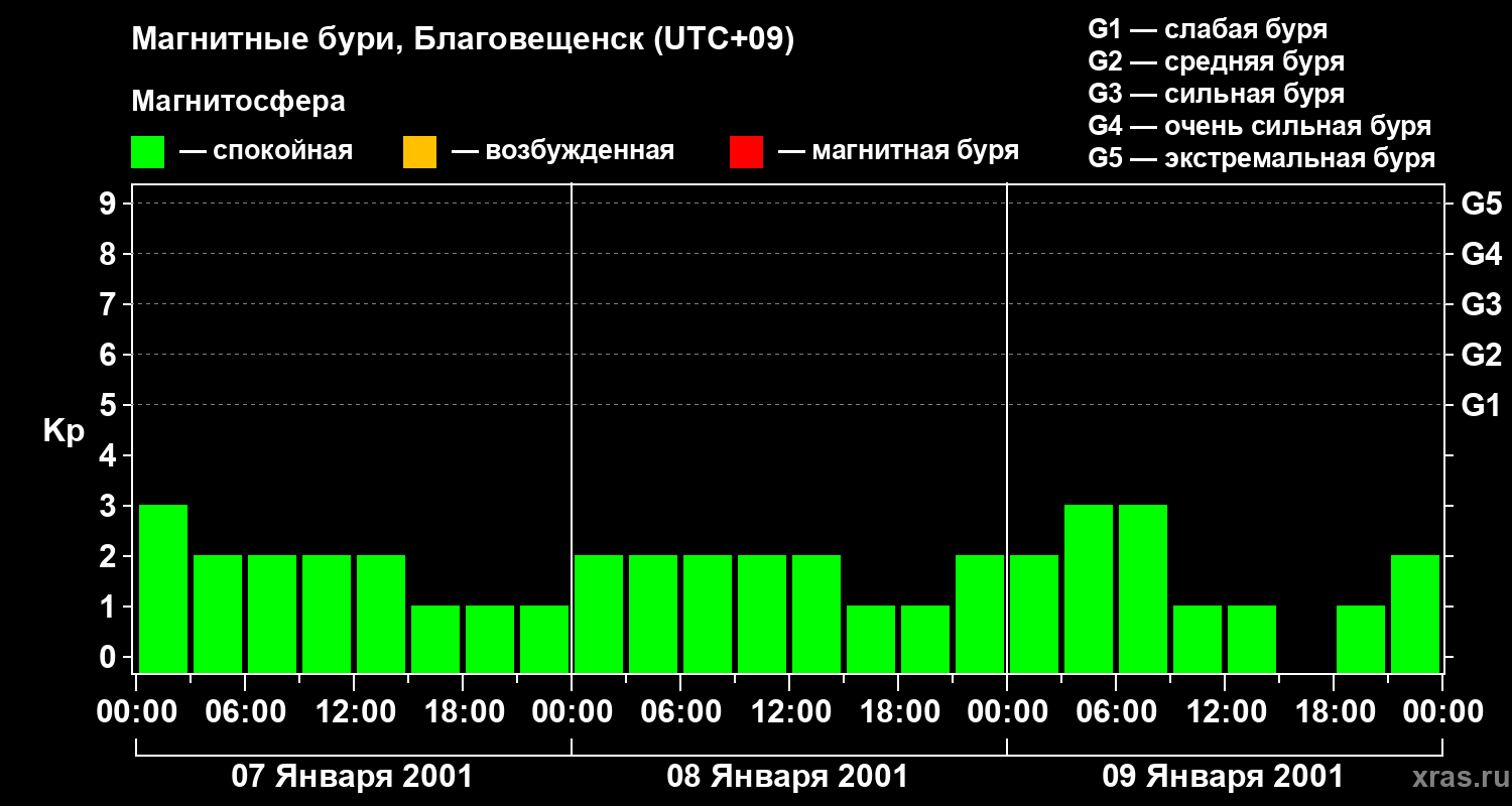 Магнитные бури в Благовещенске — 9 января 2001 года