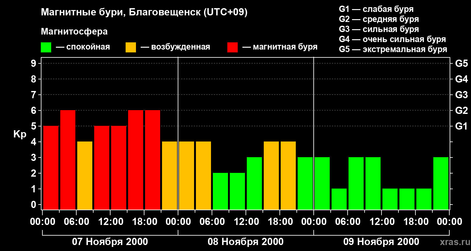 Магнитные бури в Благовещенске — 9 ноября 2000 года