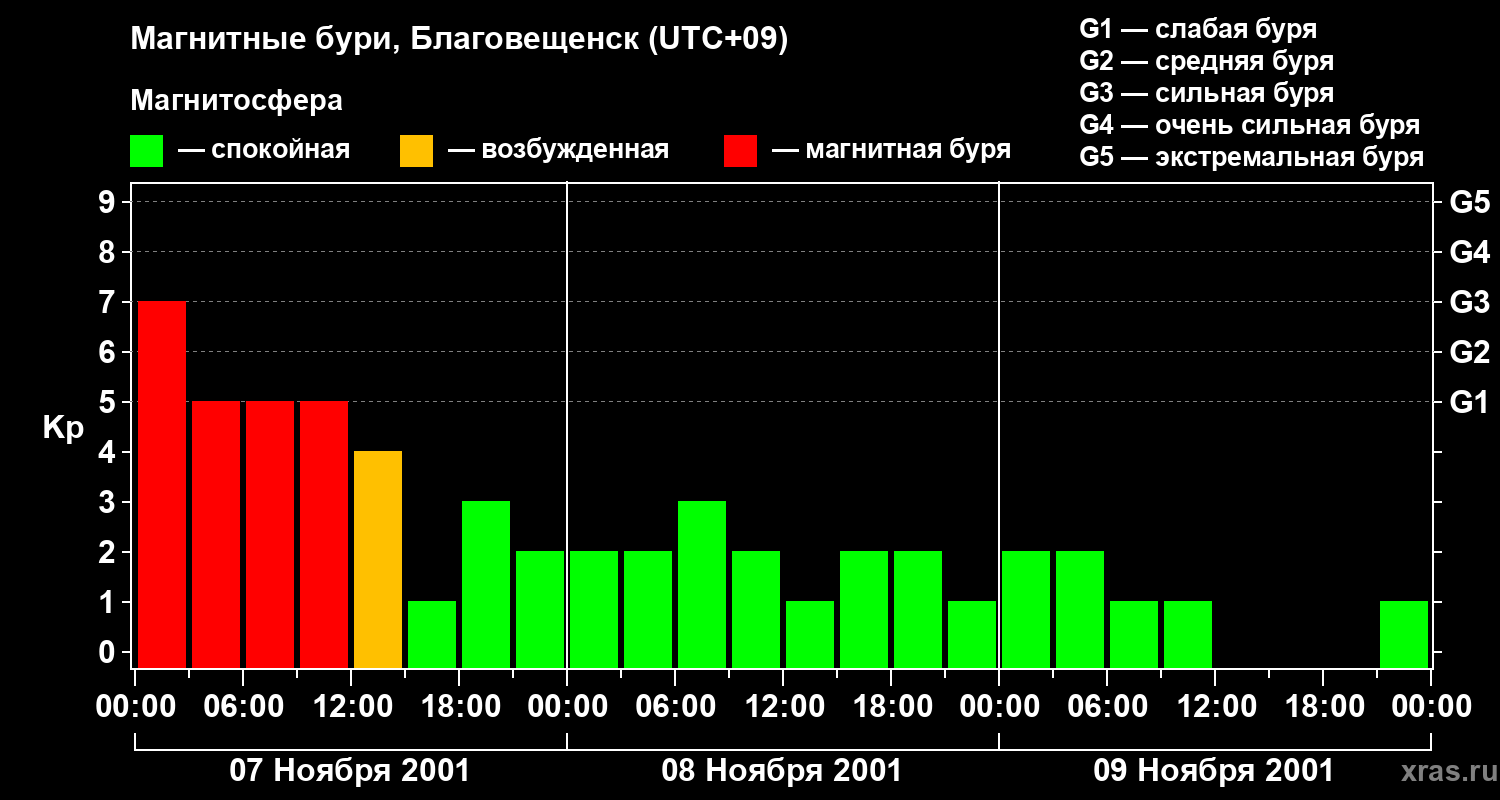 Магнитные бури в Благовещенске — 9 ноября 2001 года
