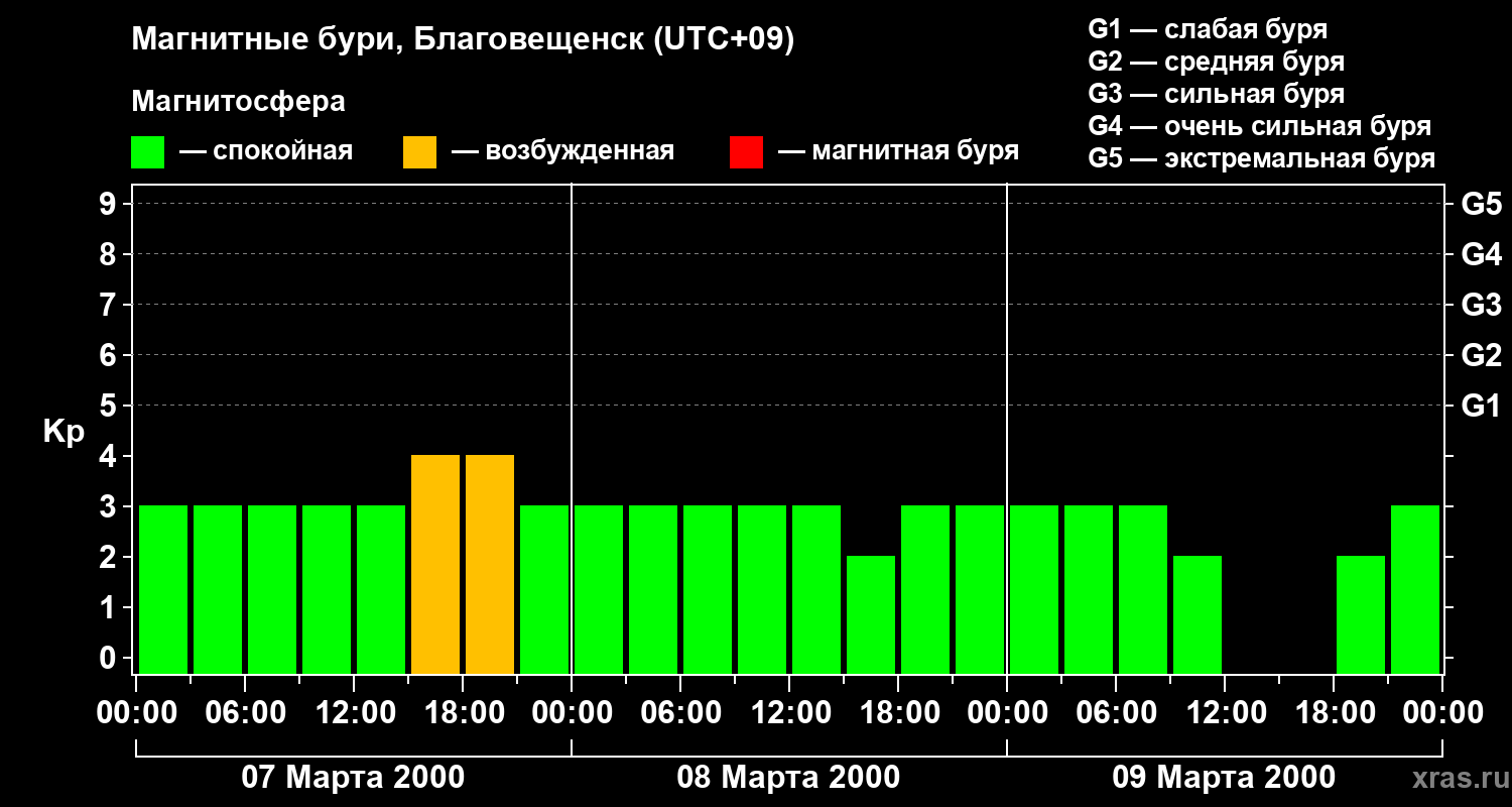 Магнитные бури в Благовещенске — 9 марта 2000 года