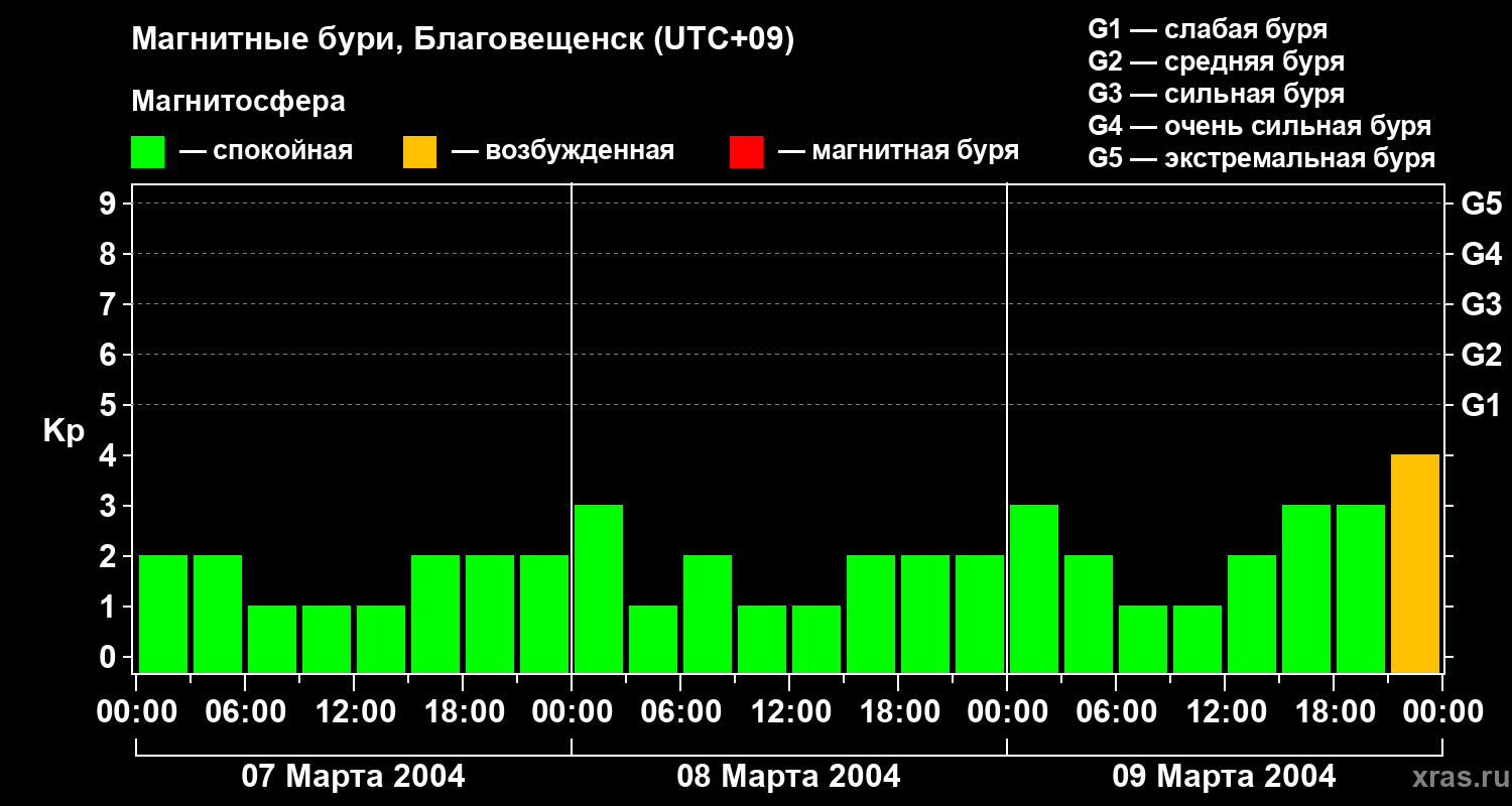 Магнитные бури в Благовещенске — 9 марта 2004 года