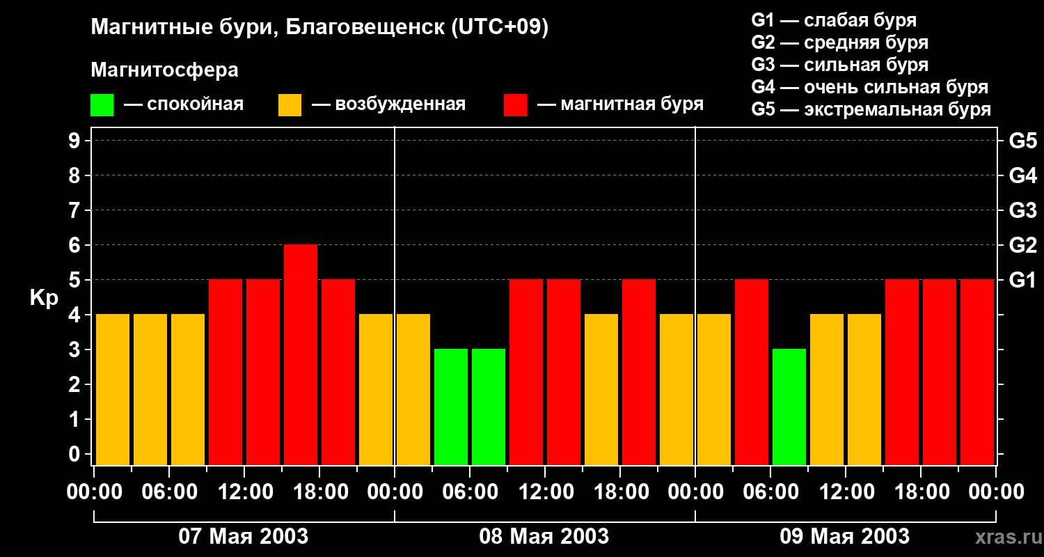 Магнитные бури в Благовещенске — 9 мая 2003 года