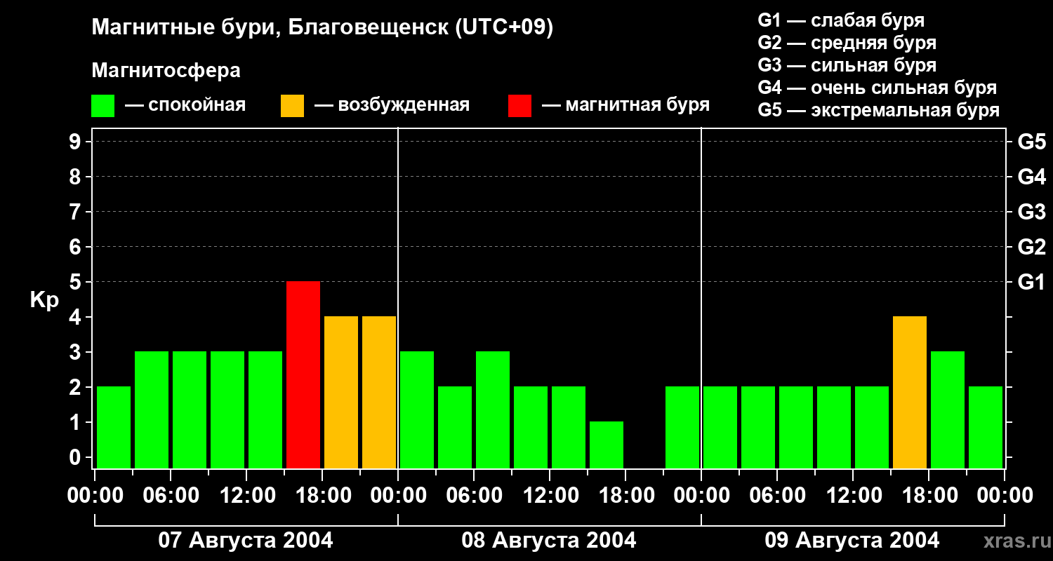 Магнитные бури в Благовещенске — 9 августа 2004 года