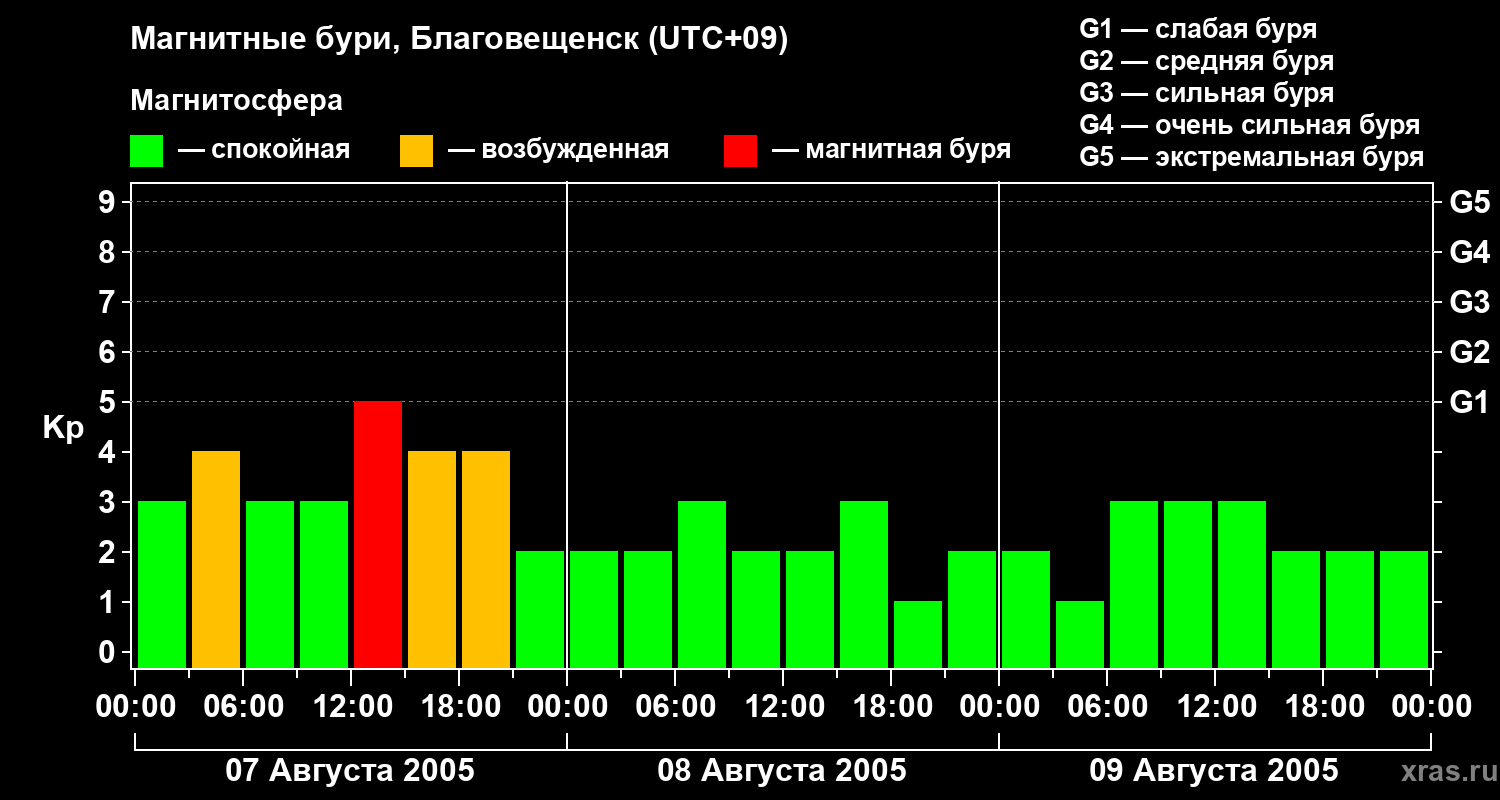 Магнитные бури в Благовещенске — 9 августа 2005 года