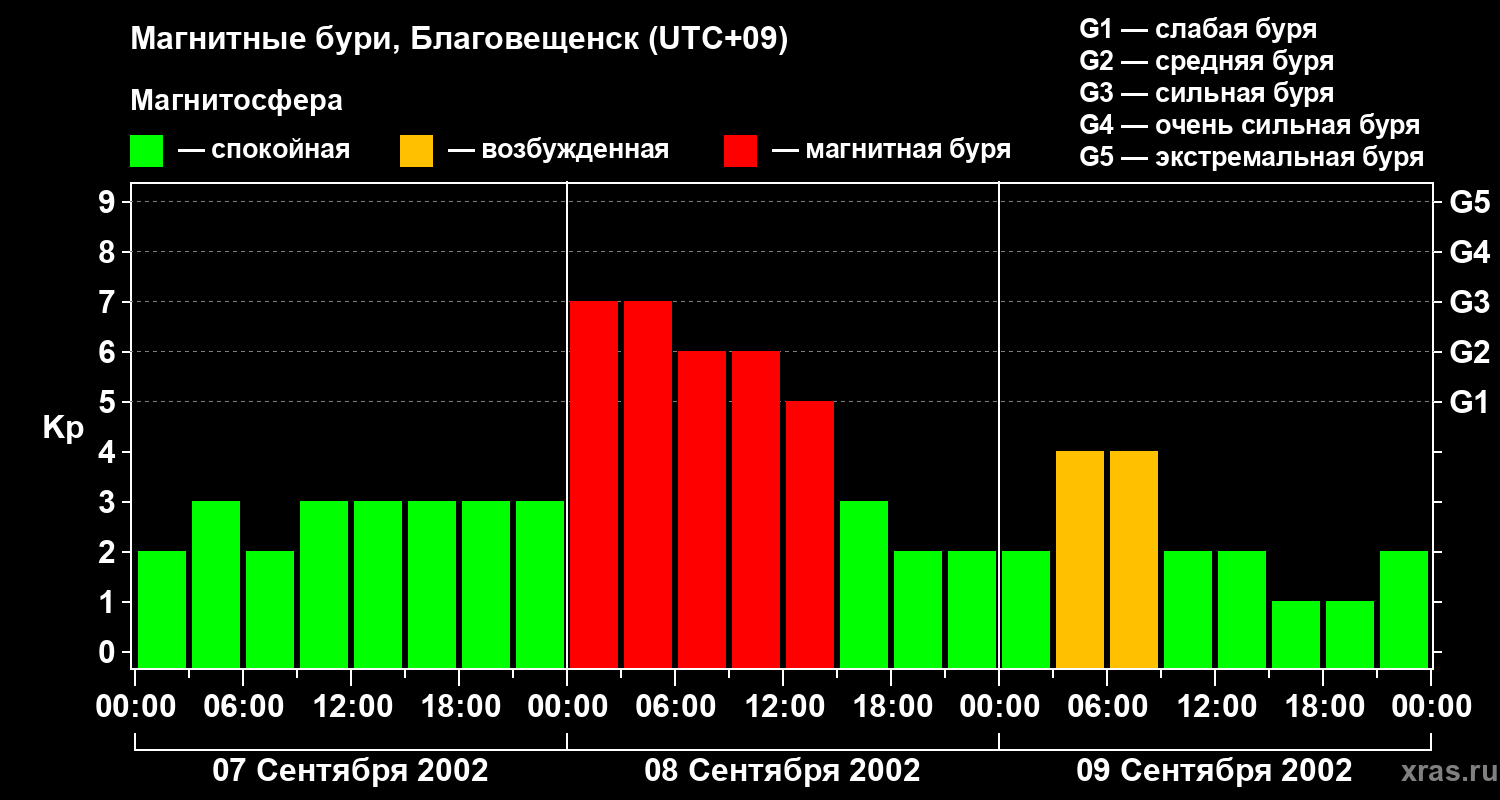 Магнитные бури в Благовещенске — 9 сентября 2002 года