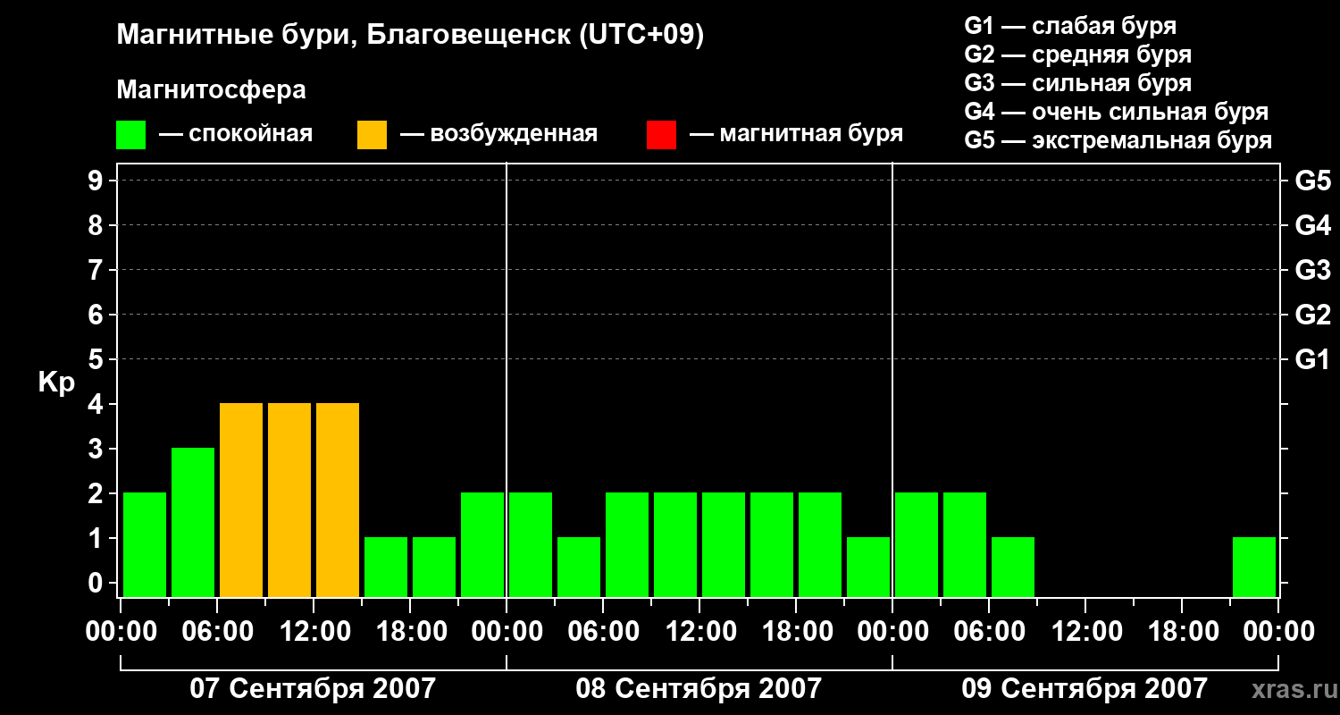Магнитные бури в Благовещенске — 9 сентября 2007 года