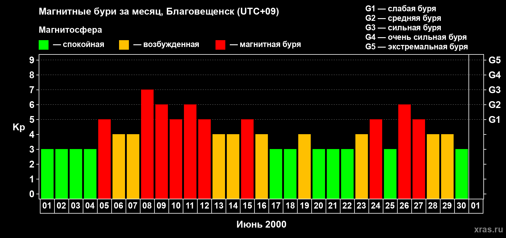 Список магнитных бурь в июне 2000 года
