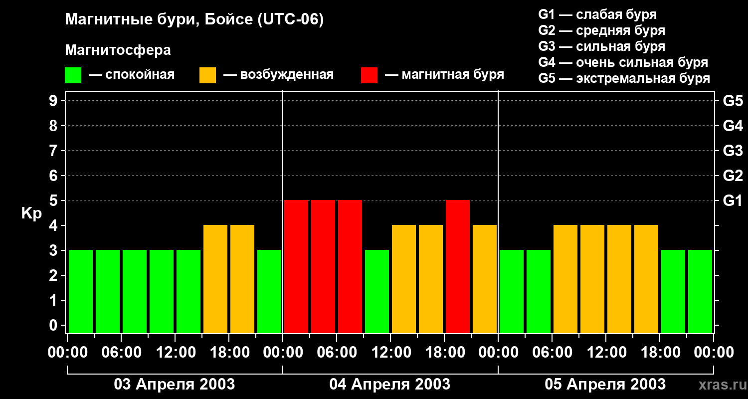 Магнитные бури в Бойсе — 5 апреля 2003 года