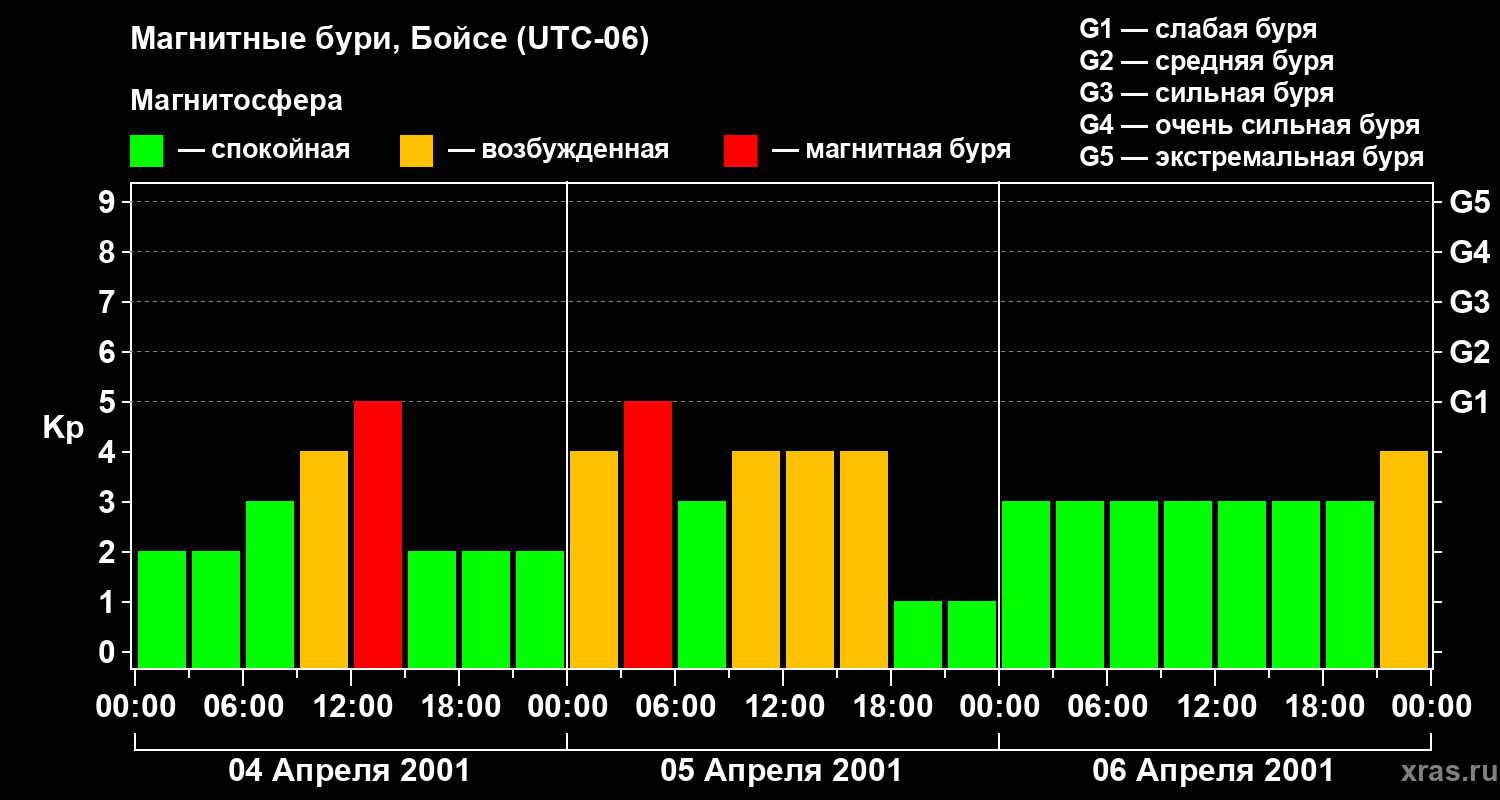 Магнитные бури в Бойсе 6 апреля 2001 года