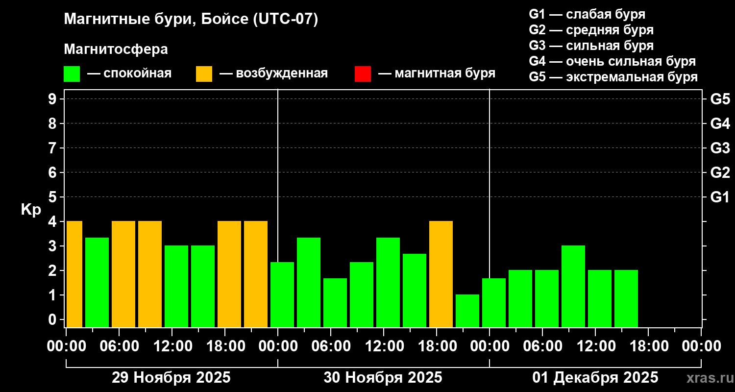 Магнитные бури в Бойсе 1 декабря 2025 года