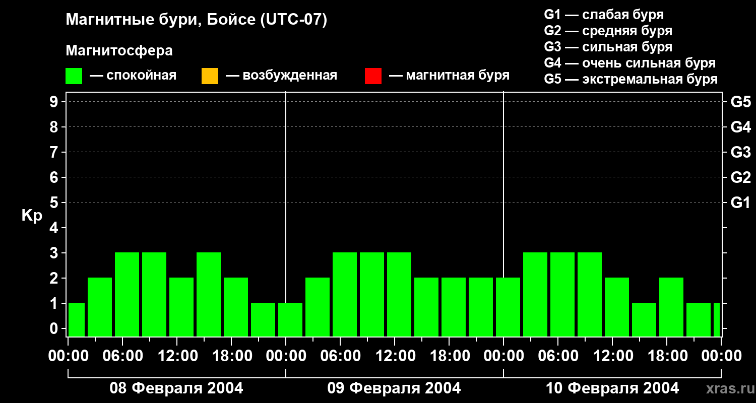 Магнитные бури в Бойсе 10 февраля 2004 года