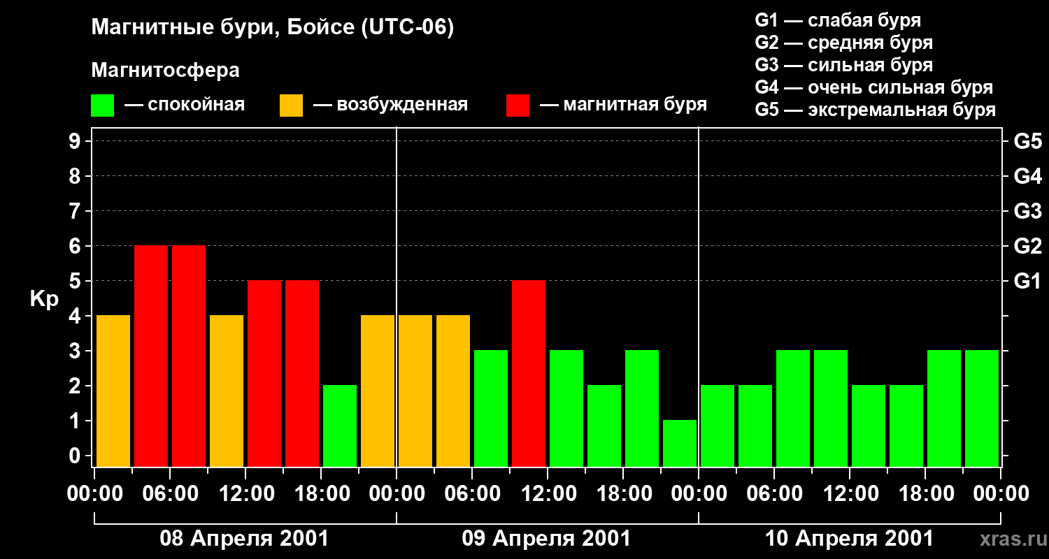 Магнитные бури в Бойсе 10 апреля 2001 года