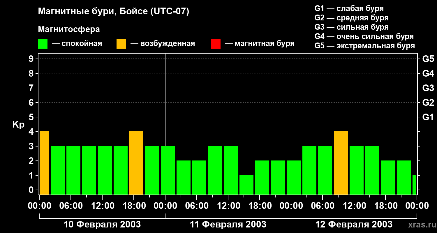 Магнитные бури в Бойсе 12 февраля 2003 года