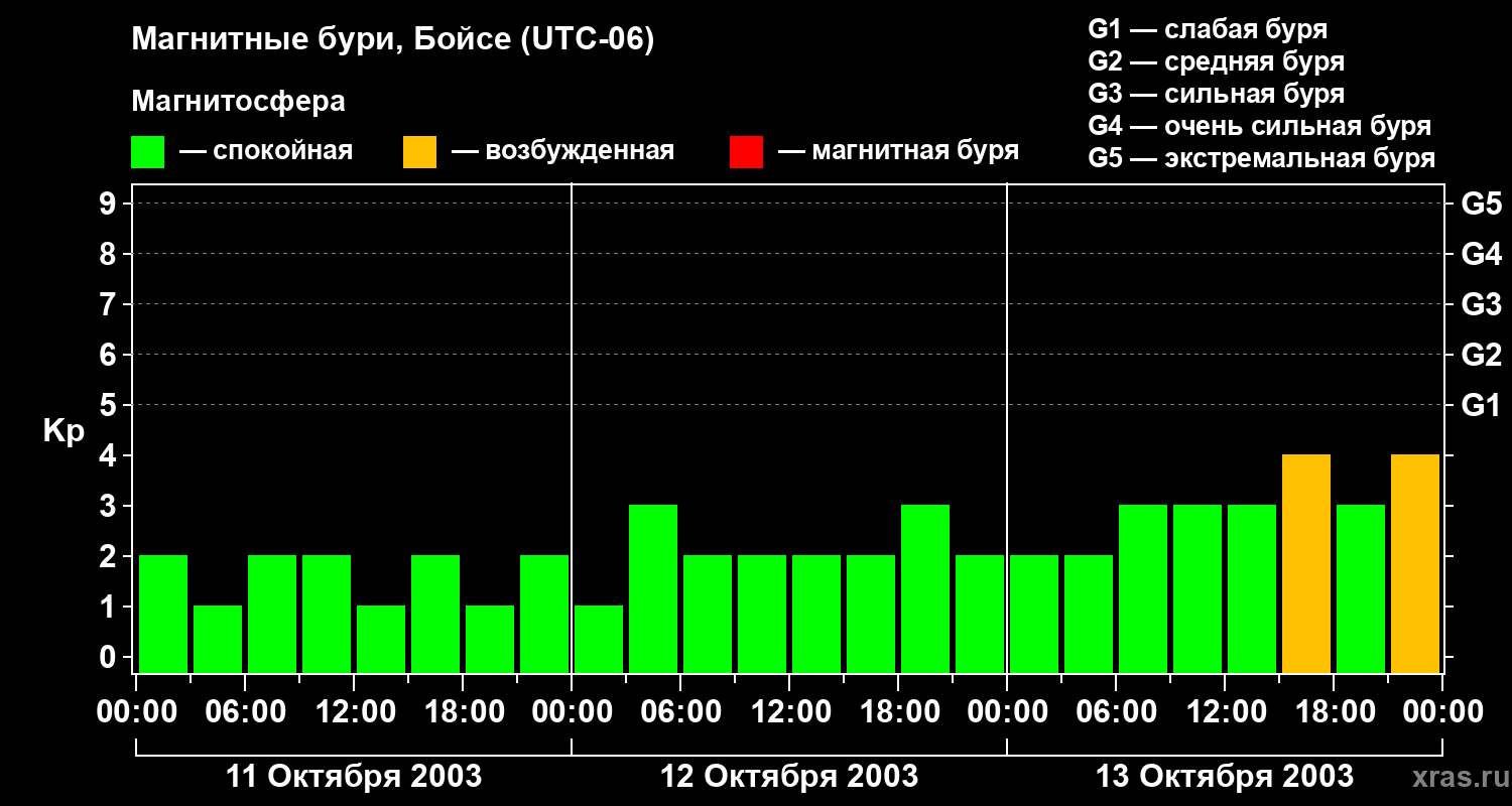 Магнитные бури в Бойсе — 13 октября 2003 года