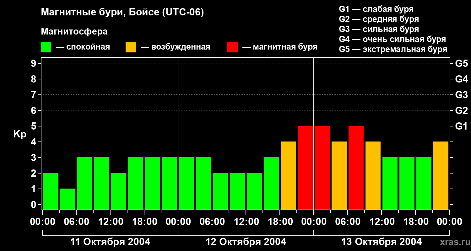 Магнитные бури в Бойсе — 13 октября 2004 года