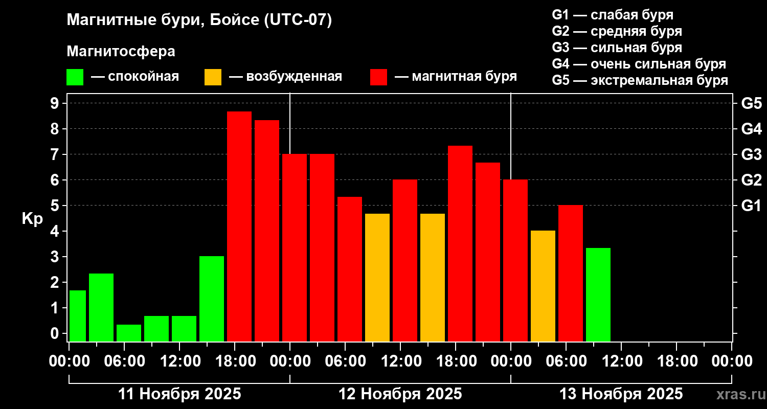 Магнитные бури в Бойсе 13 ноября 2025 года
