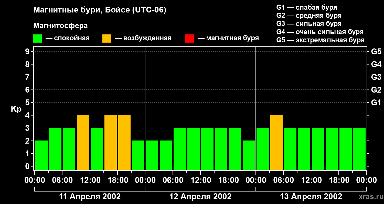 Магнитные бури в Бойсе 13 апреля 2002 года