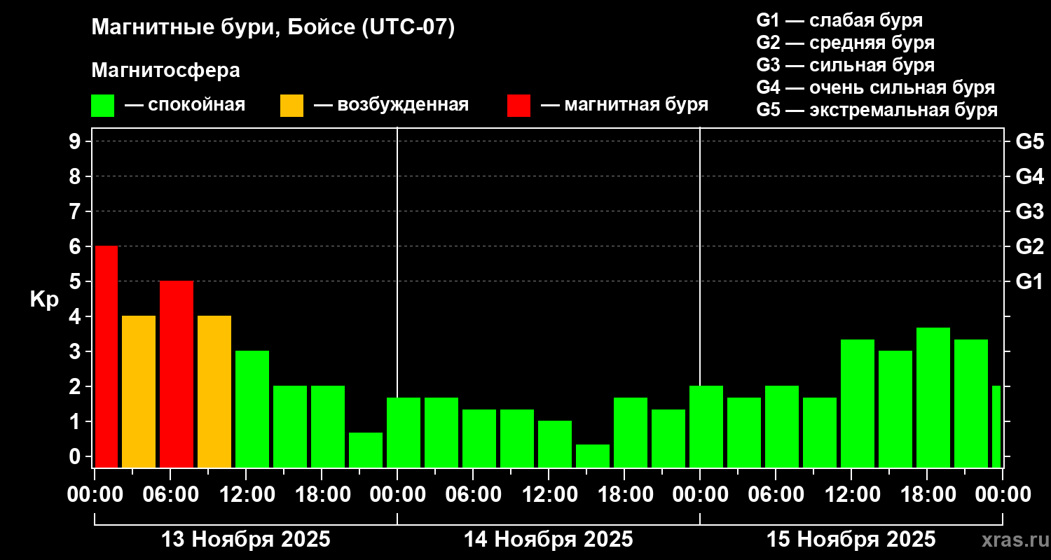 Магнитные бури в Бойсе 15 ноября 2025 года