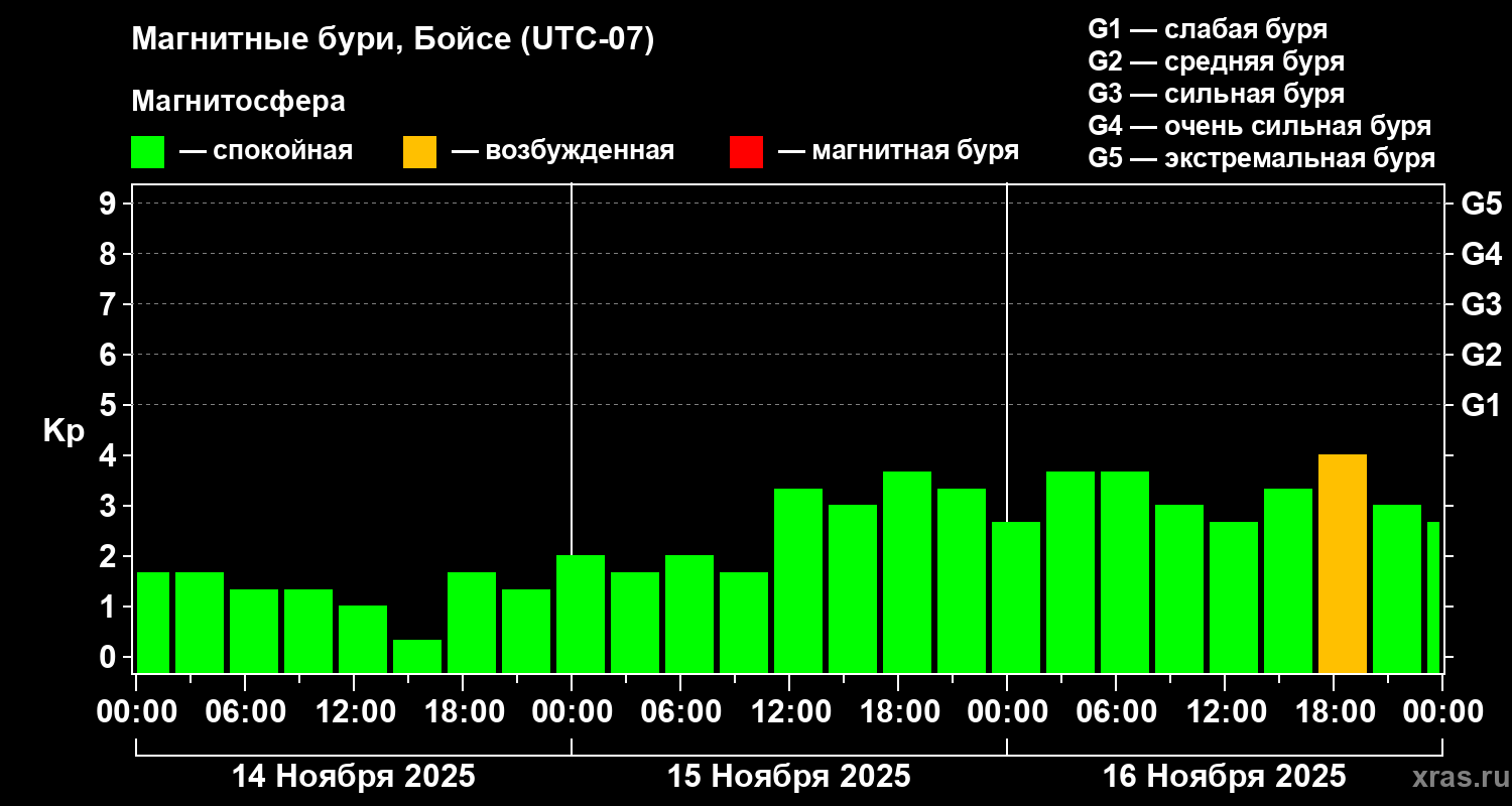 Магнитные бури в Бойсе 16 ноября 2025 года