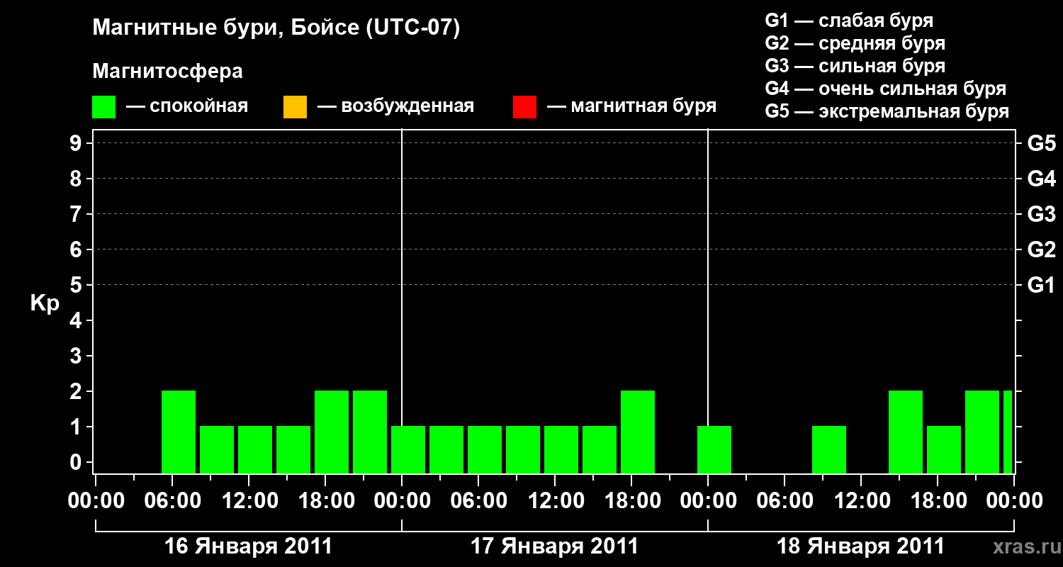 Изменения геомагнитного индекса Kp с 16 по 18 января 2011 года для средних широт