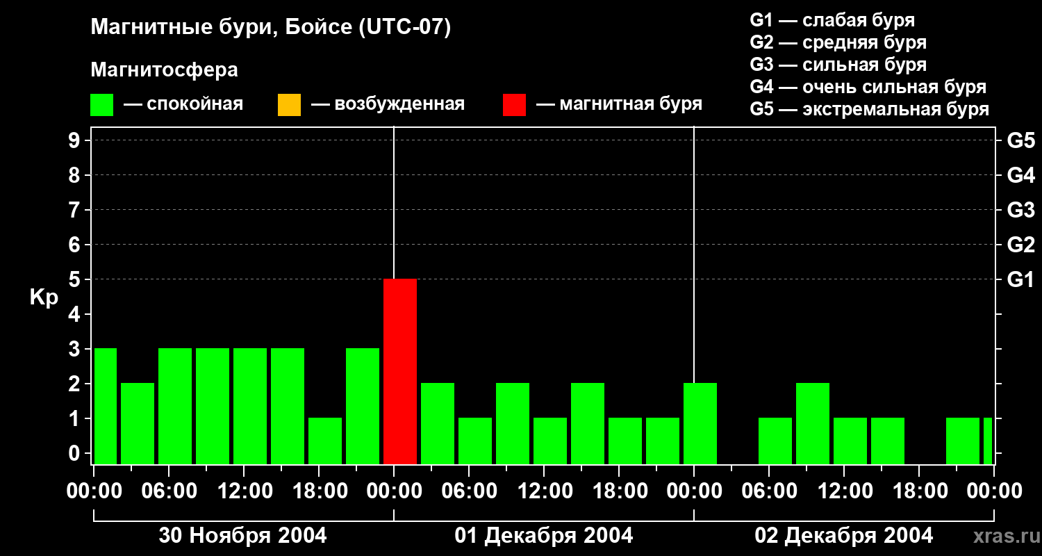 Магнитные бури в Бойсе 2 декабря 2004 года
