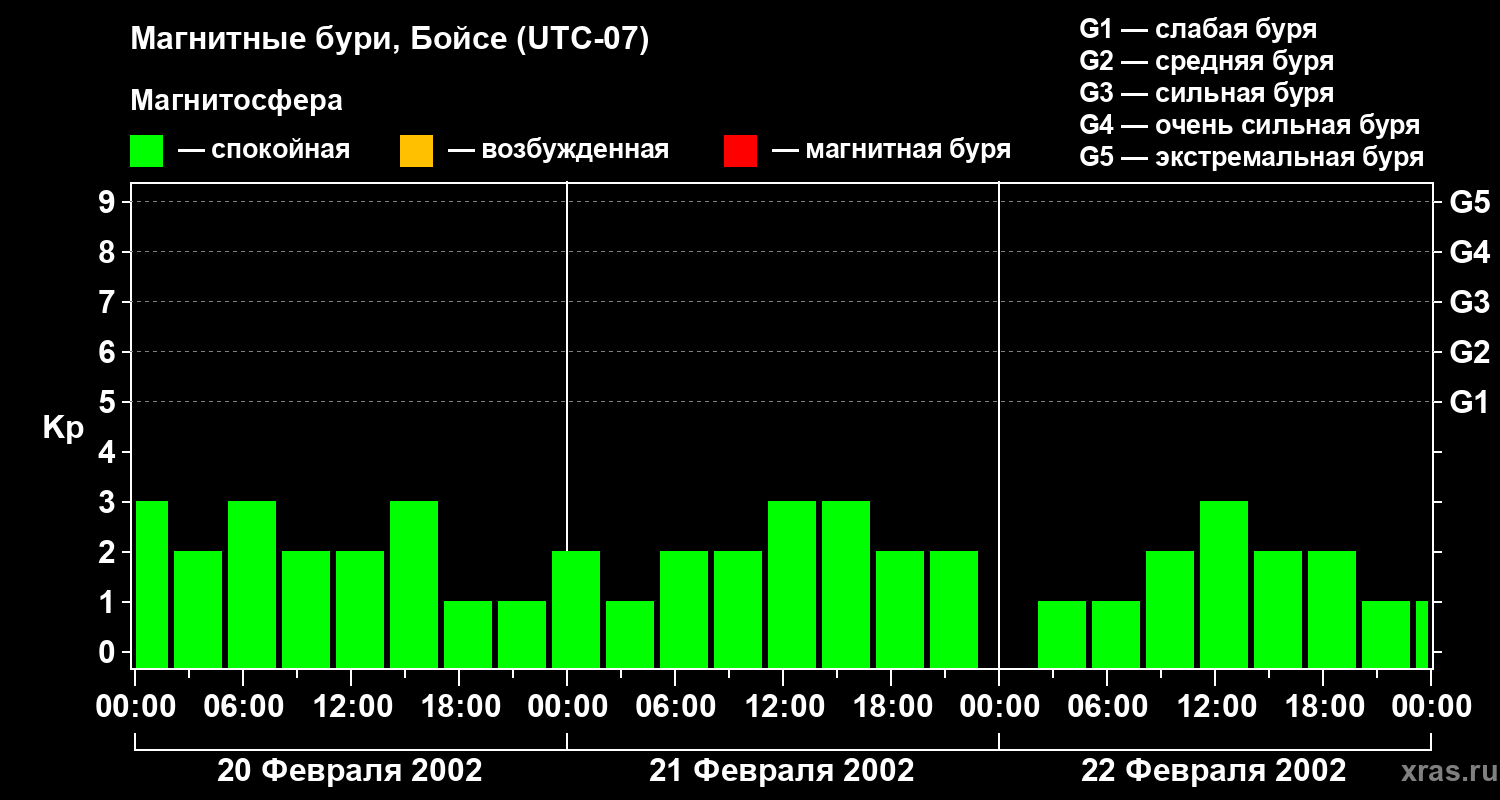Магнитные бури в Бойсе 22 февраля 2002 года