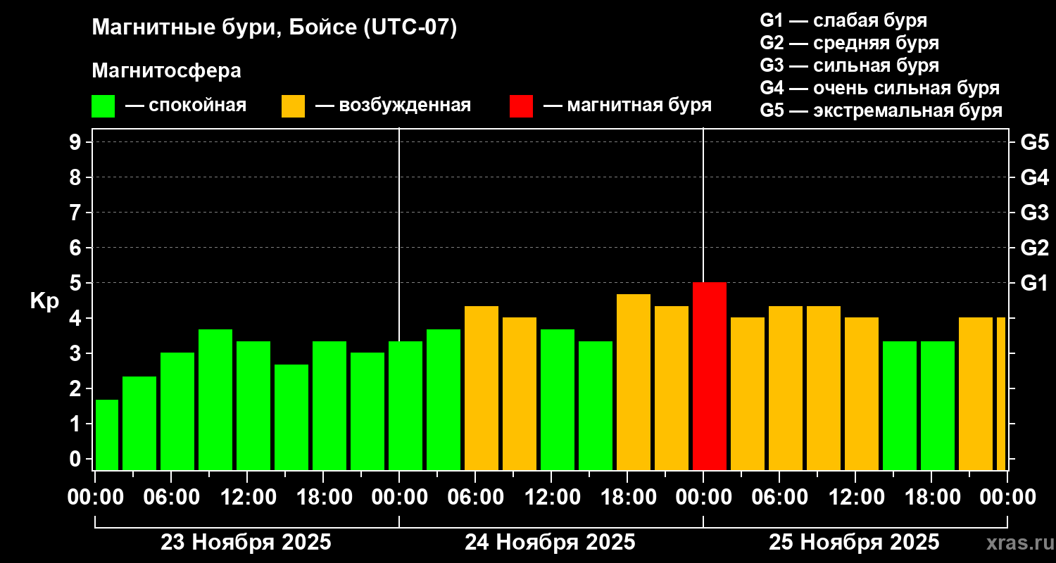 Магнитные бури в Бойсе 25 ноября 2025 года