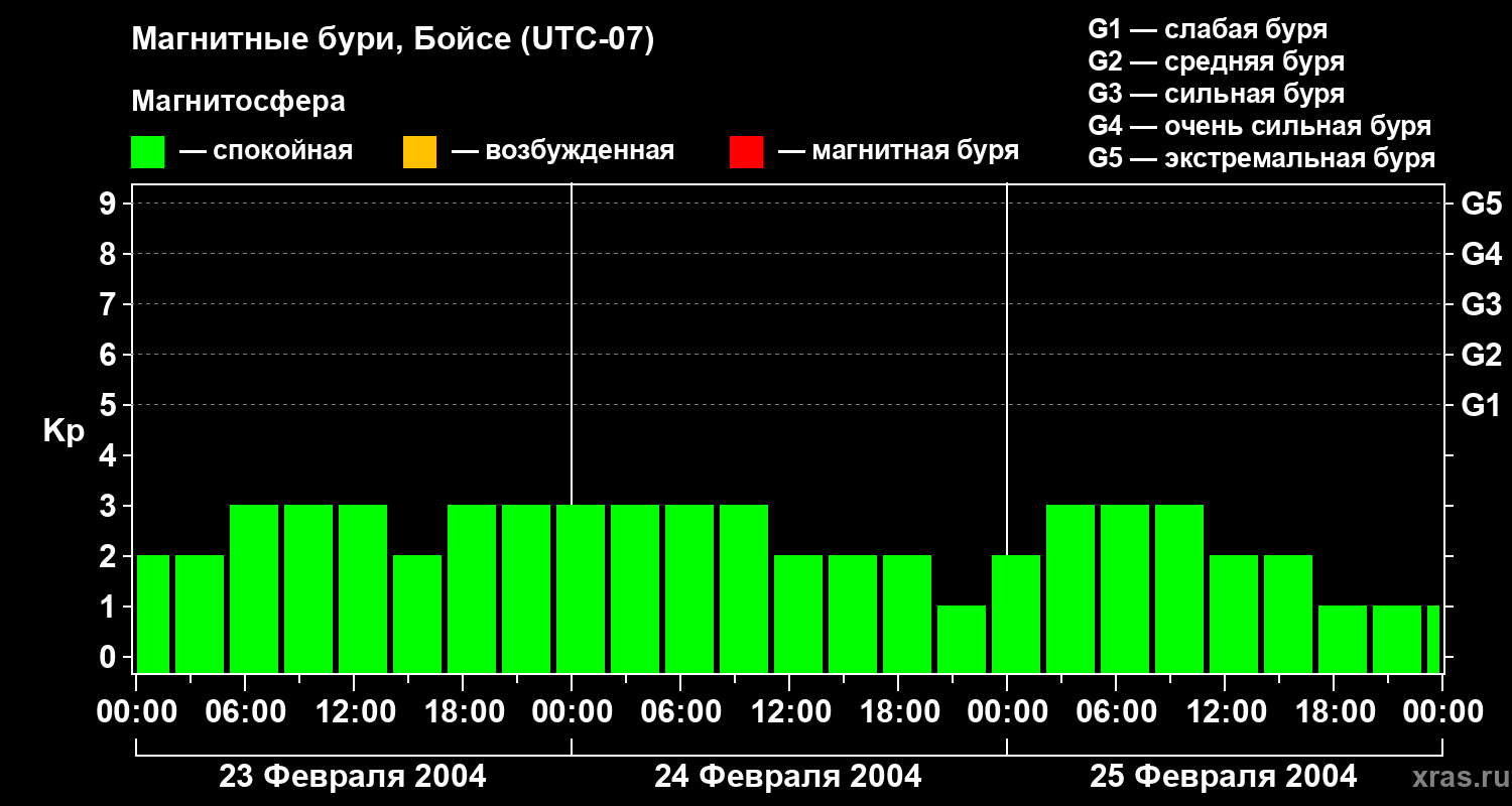 Магнитные бури в Бойсе — 25 февраля 2004 года