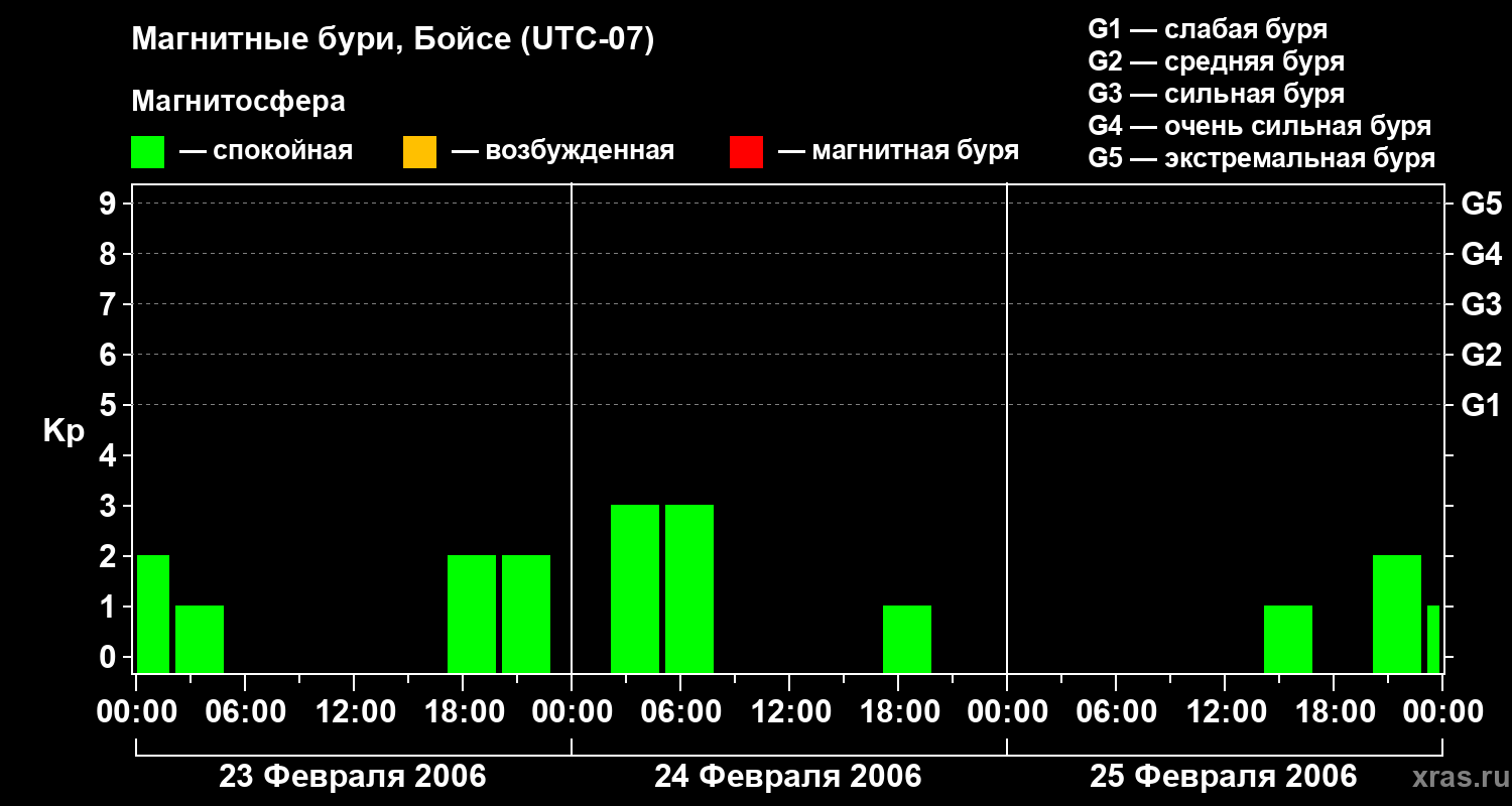 Магнитные бури в Бойсе 25 февраля 2006 года