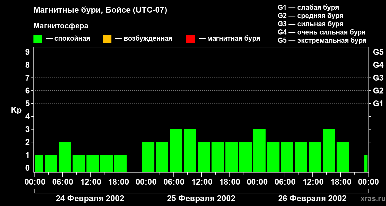 Магнитные бури в Бойсе 26 февраля 2002 года