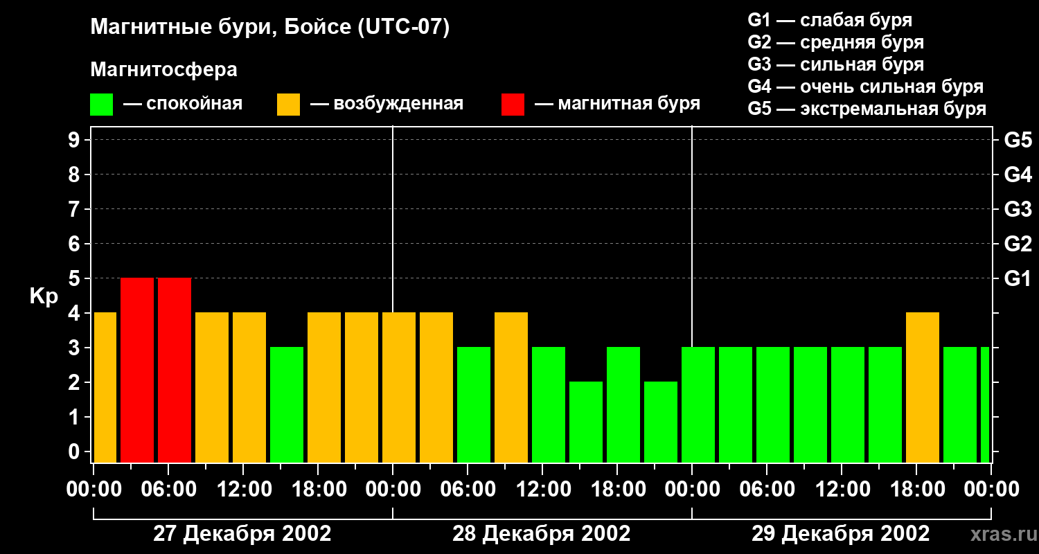 Магнитные бури в Бойсе 29 декабря 2002 года