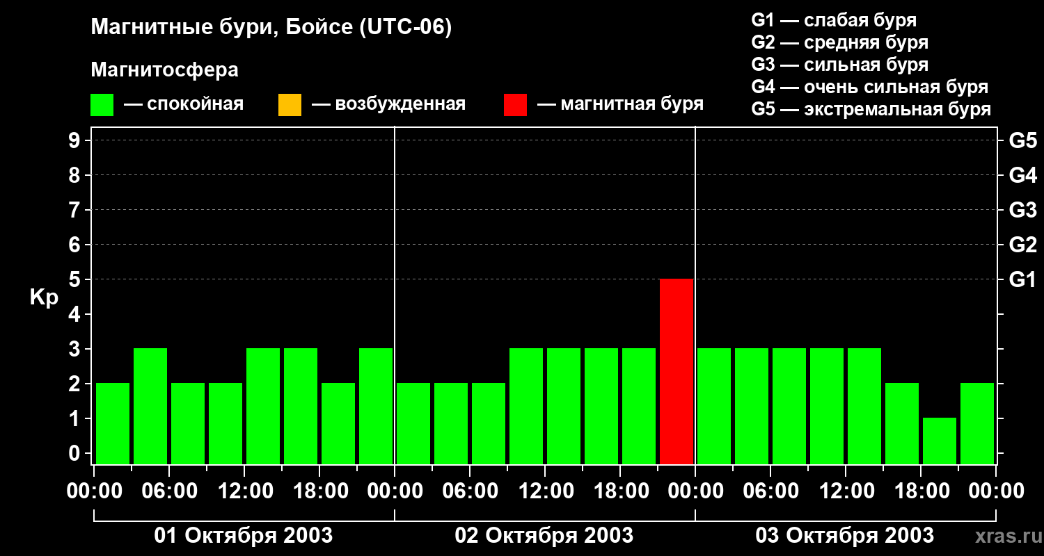 Магнитные бури в Бойсе — 3 октября 2003 года