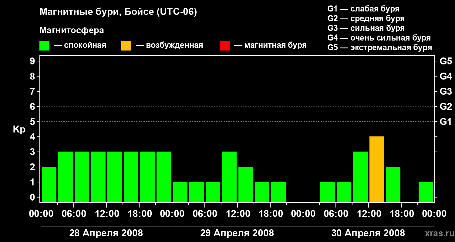 Магнитные бури в Бойсе — 30 апреля 2008 года