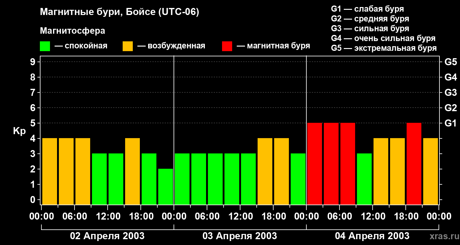 Магнитные бури в Бойсе 4 апреля 2003 года