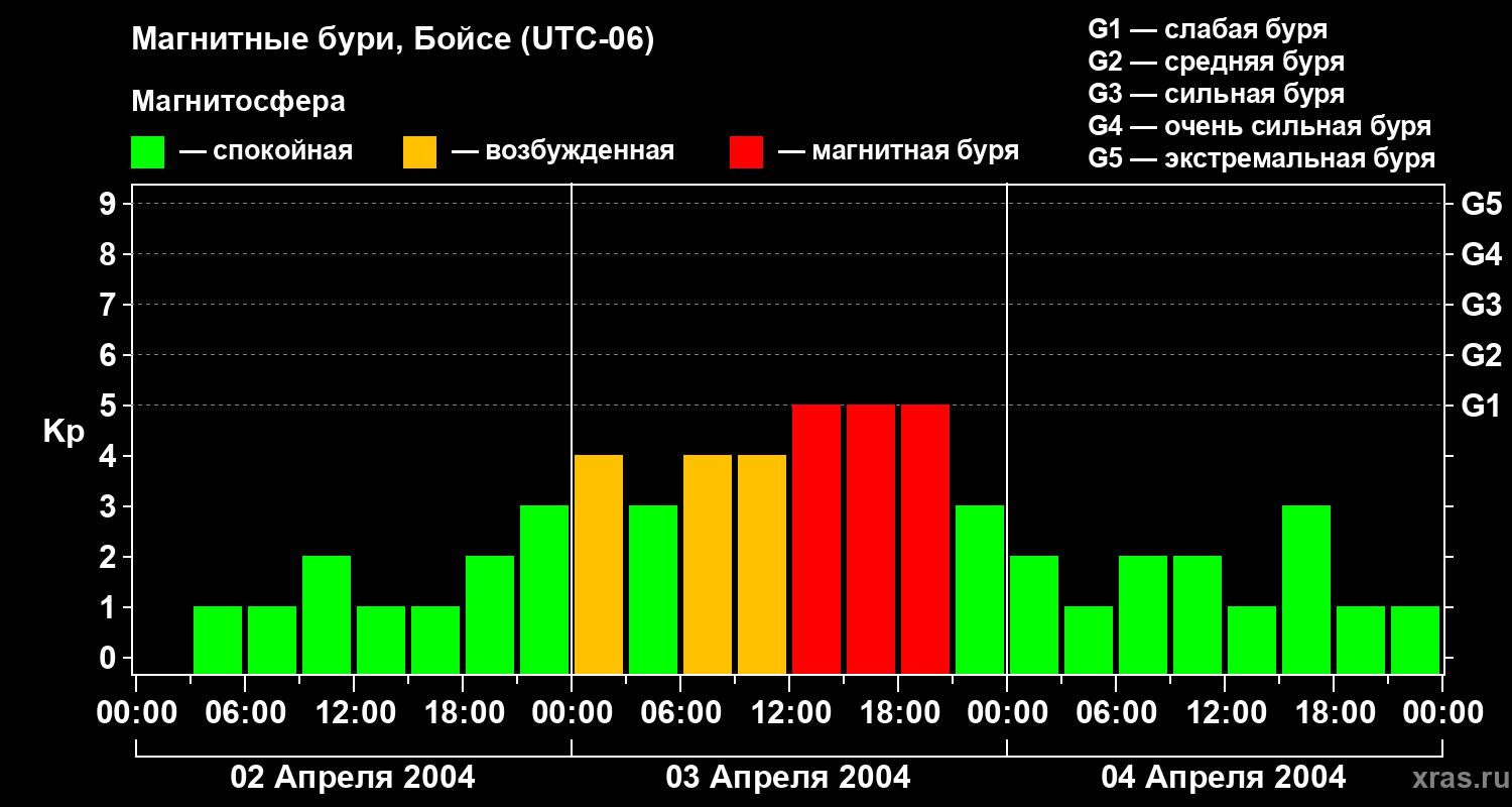 Магнитные бури в Бойсе 4 апреля 2004 года