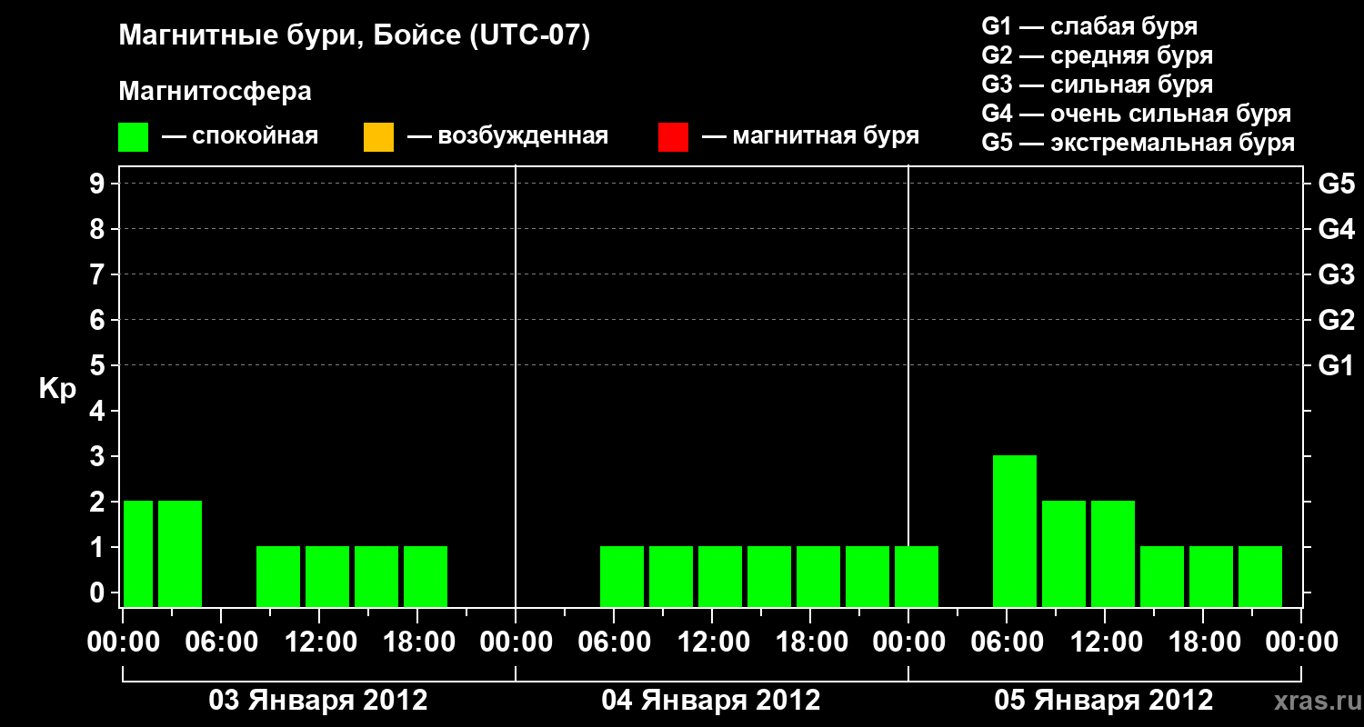 Изменения геомагнитного индекса Kp с 3 по 5 января 2012 года для средних широт