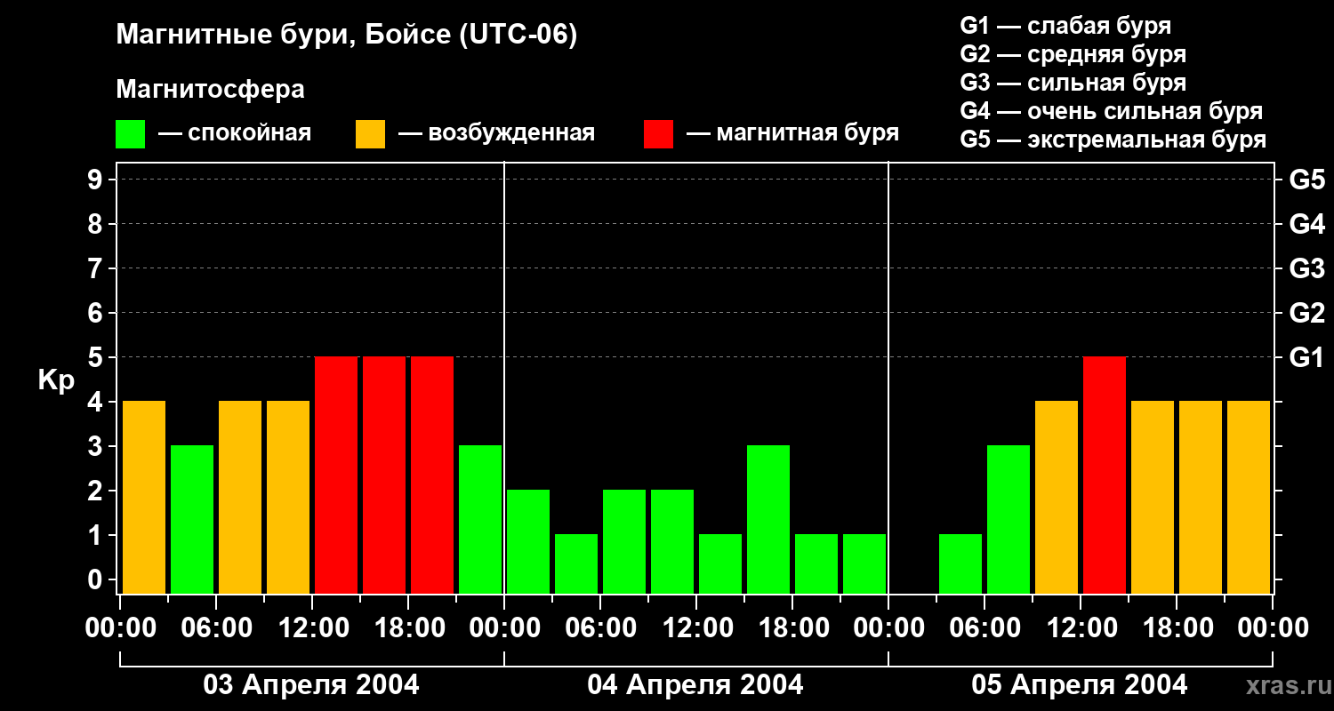 Магнитные бури в Бойсе 5 апреля 2004 года