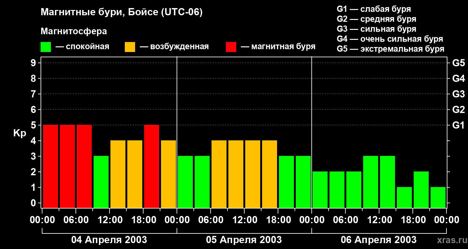 Магнитные бури в Бойсе 6 апреля 2003 года
