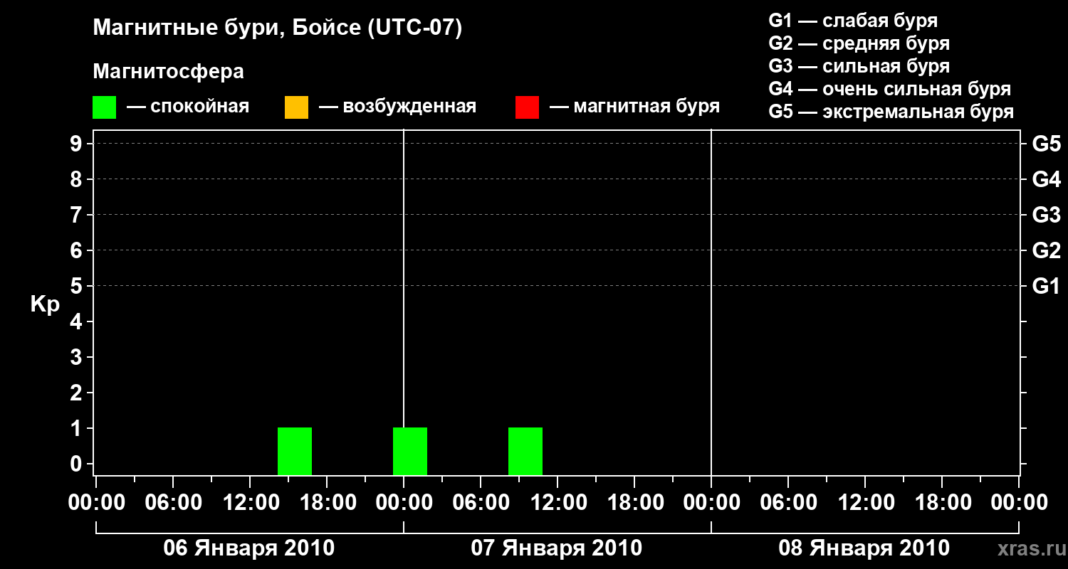 Изменения геомагнитного индекса Kp с 6 по 8 января 2010 года для средних широт