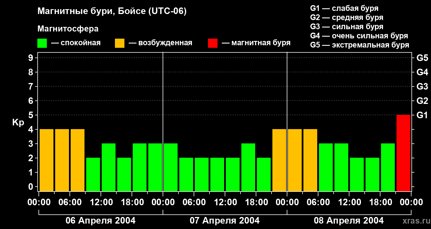 Магнитные бури в Бойсе 8 апреля 2004 года