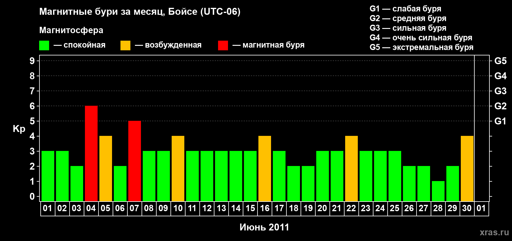Список магнитных бурь в июне 2011 года