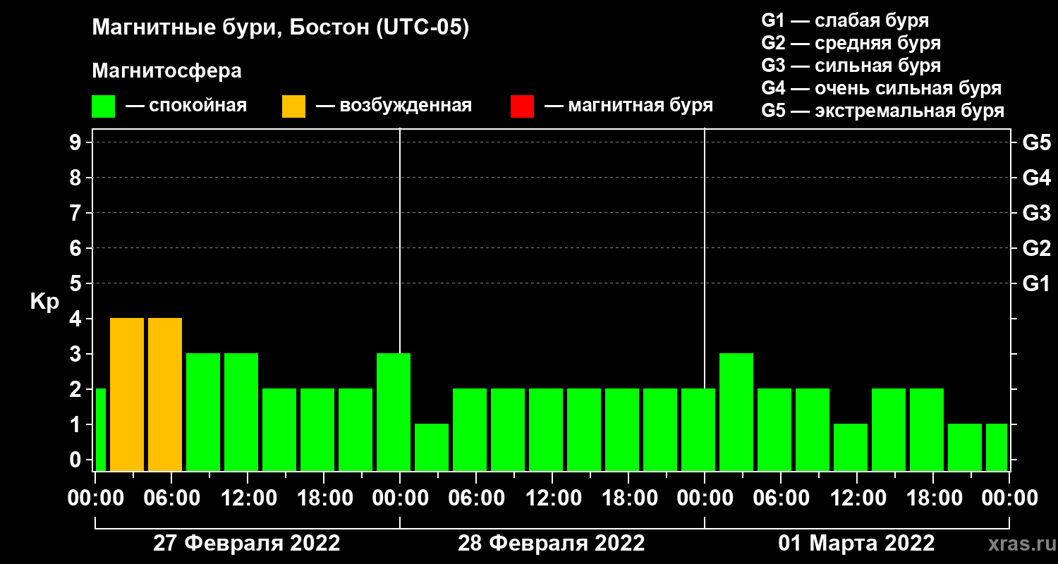 Магнитные бури в Бостоне 1 марта 2022 года
