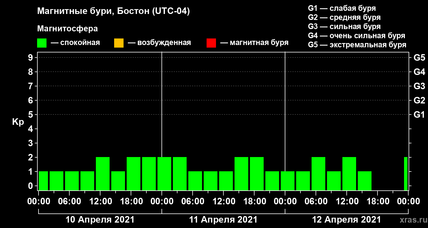 Магнитные бури в Бостоне 12 апреля 2021 года