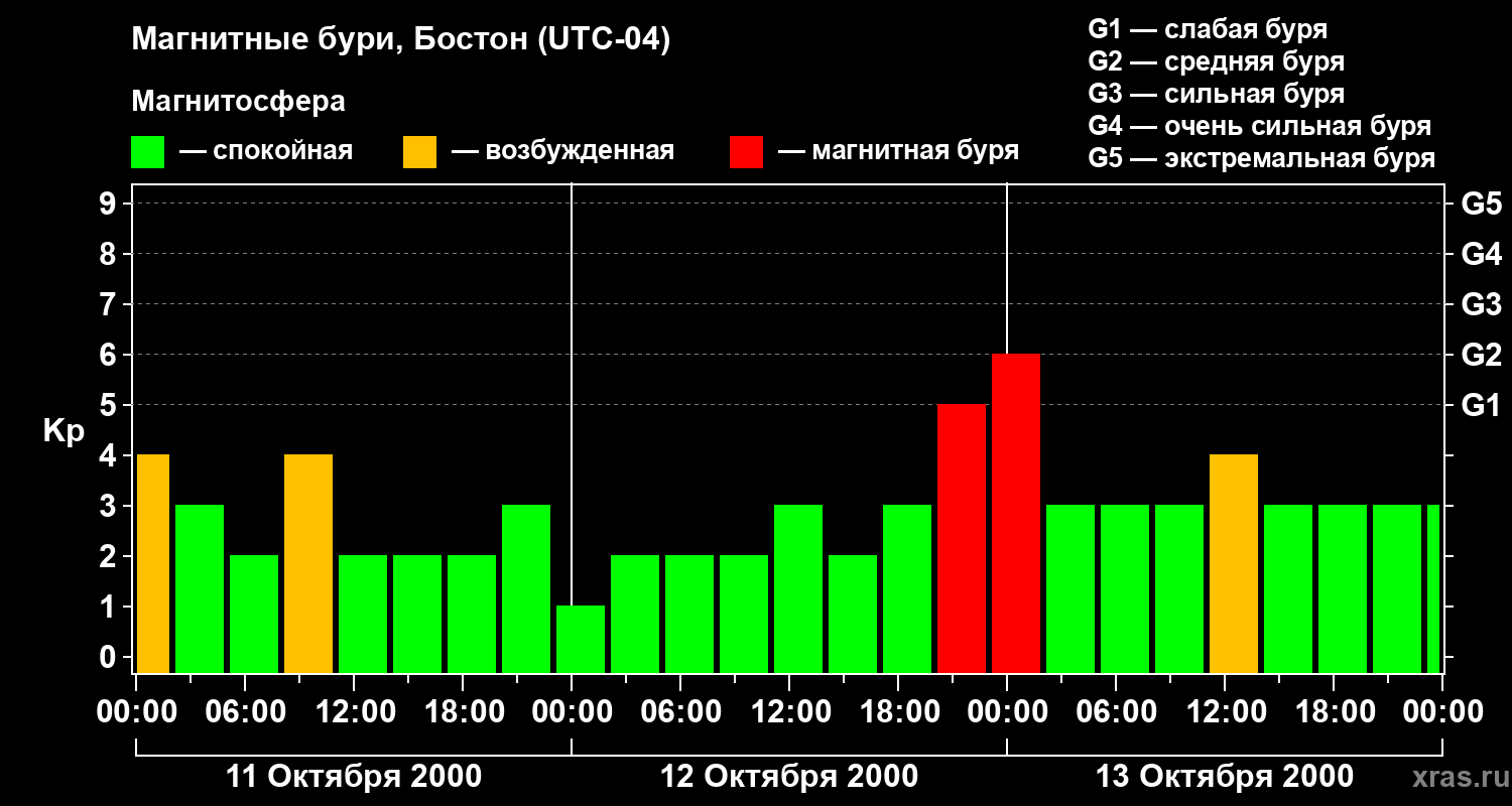 Магнитные бури в Бостоне 13 октября 2000 года