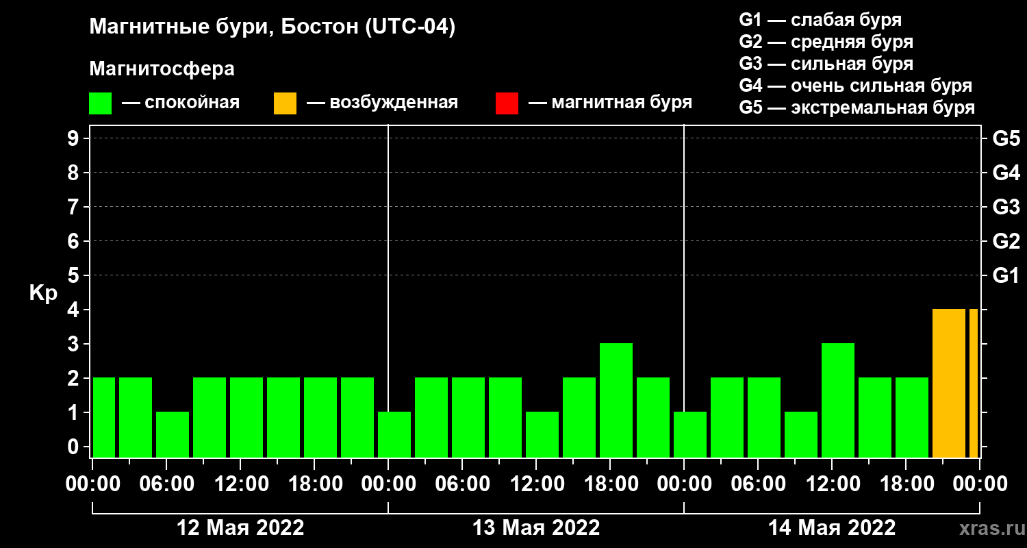 Магнитные бури в Бостоне 14 мая 2022 года