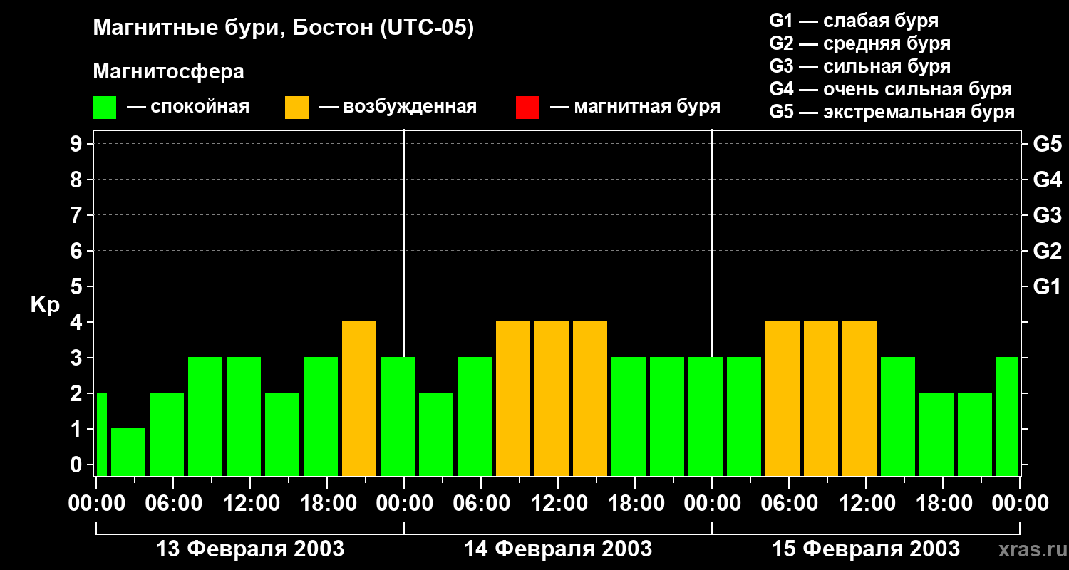 Магнитные бури в Бостоне — 15 февраля 2003 года