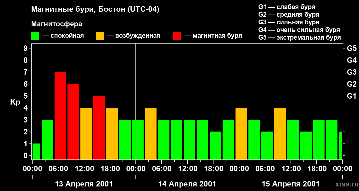 Магнитные бури в Бостоне 15 апреля 2001 года